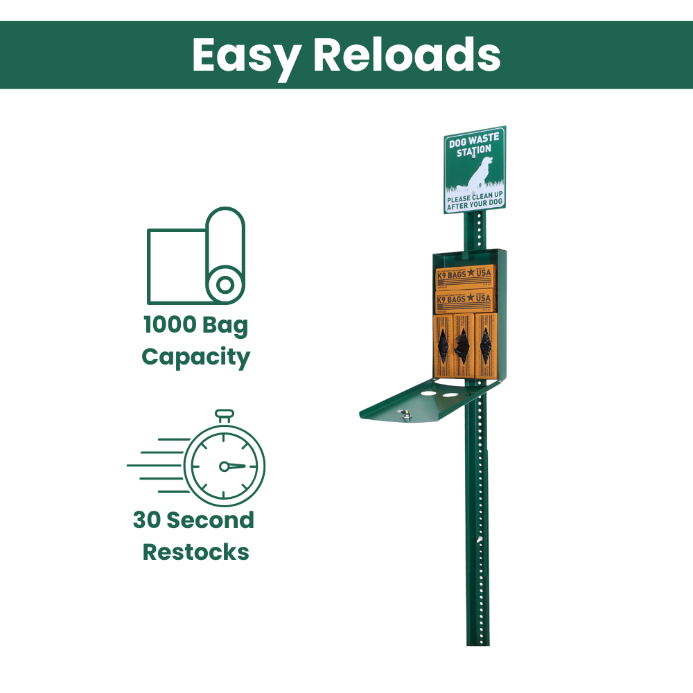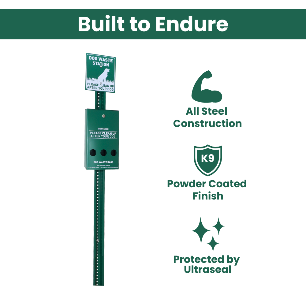 The K9 Mini Waste Station is perfect for smaller parks, residential areas, and other outdoor settings, this station is designed for efficiency and long-lasting performance.